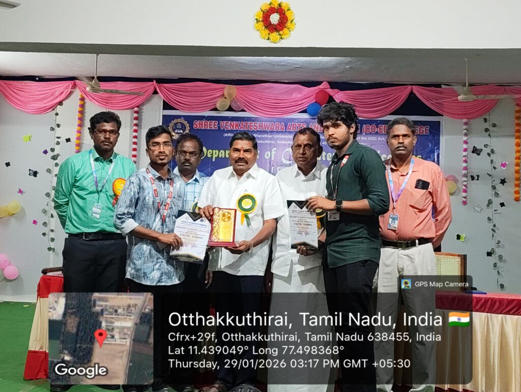 The Department of Computer Applications at Shree Venkateshwara Arts and Science (Co-Ed) College organized a One Day National Level Seminar on “The Intelligent Ecosystem: IoT meets AI/ML for a Smarter Tomorrow” on 18th July 2025. The seminar brought together renowned resource persons including Dr. N. V. Poornima from Symbiosis International University, Dr. N. P. Revathy, and Dr. P. E. Elango from Gobi Arts and Science College, who shared their insights into the convergence of IoT, Artificial Intelligence, and Machine Learning. The event, held at the college auditorium, attracted participants from various institutions and included engaging sessions, seminar kits, refreshments, and lunch.