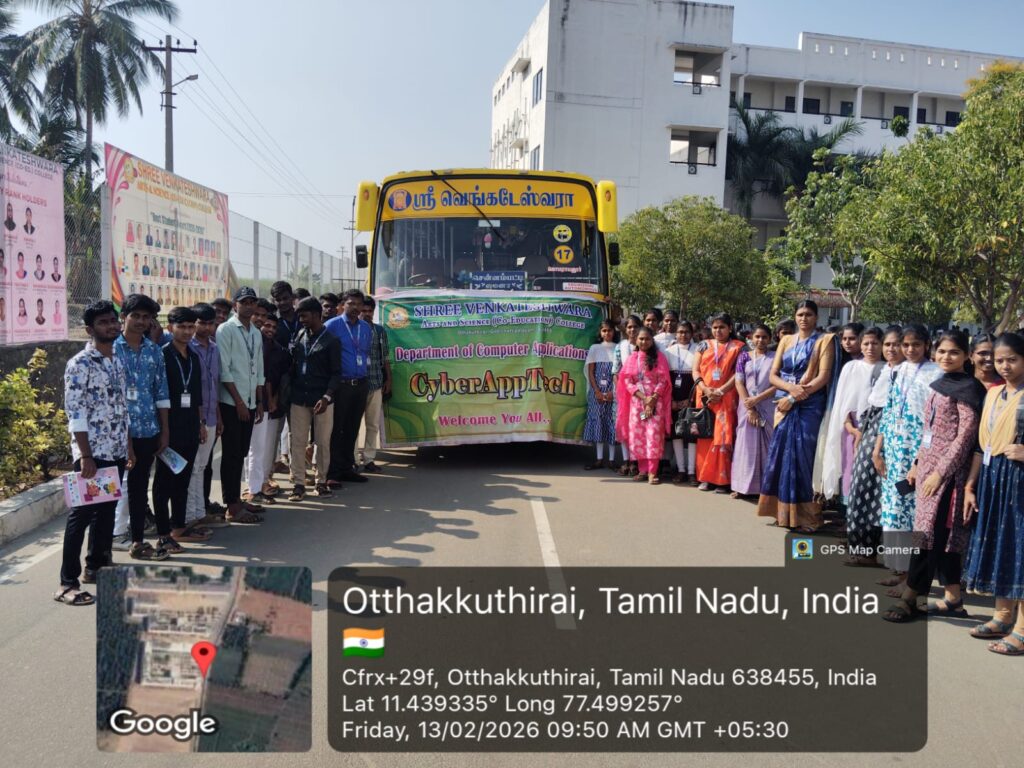 The Department of Computer Applications organized an Industrial Visit for II Year students on 13 February 2026. The visit aimed to provide practical exposure and help students understand real-time industrial working environments. Students gained insights into industrial operations, work culture, and career opportunities. The interaction bridged the gap between classroom learning and practical implementation. The visit was informative and beneficial, enriching students with valuable industry experience.