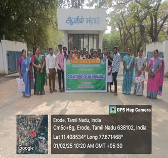 The Department of Mathematics organized a one-day visit to the Book Fair at Erode CNC College on 08.08.2025. Seven students, along with one staff member, started the journey from Othakuthirai at 10:30 am and reached the venue by 11:30 am with great excitement and enthusiasm.