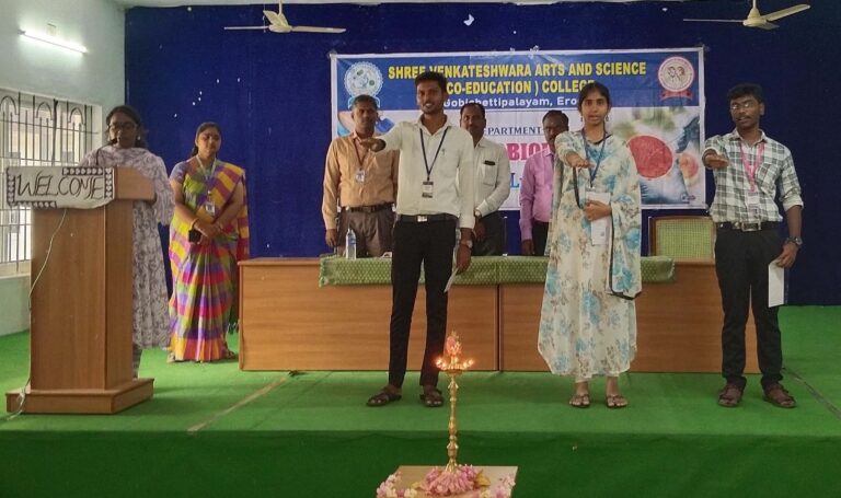 The Microbiology Department organized Microlumina Association inaugural programme on 11.08.2025. The ceremony was started with prayer song. Dr. A. Mohanasundaram, Principal and Dr. Chi. Nanjappa, Vice Principal presided the function. Dr. S. Manju, Head of the Department delivered the welcome address on this occasion. The office bearers of our association for this academic year were introduced by Dr. S. Manju Head, of the Department of Microbiology.