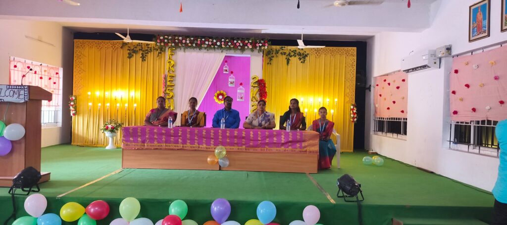 Fresher’s day celebration conducted on 23.08.2024 at the college auditorium. Students of  III B.Sc and II B. Sc Microbiology co-ordinate the program with a lot of entertaining events and Games for the fresher’s and also they presented memento to  the all the fresher’s.